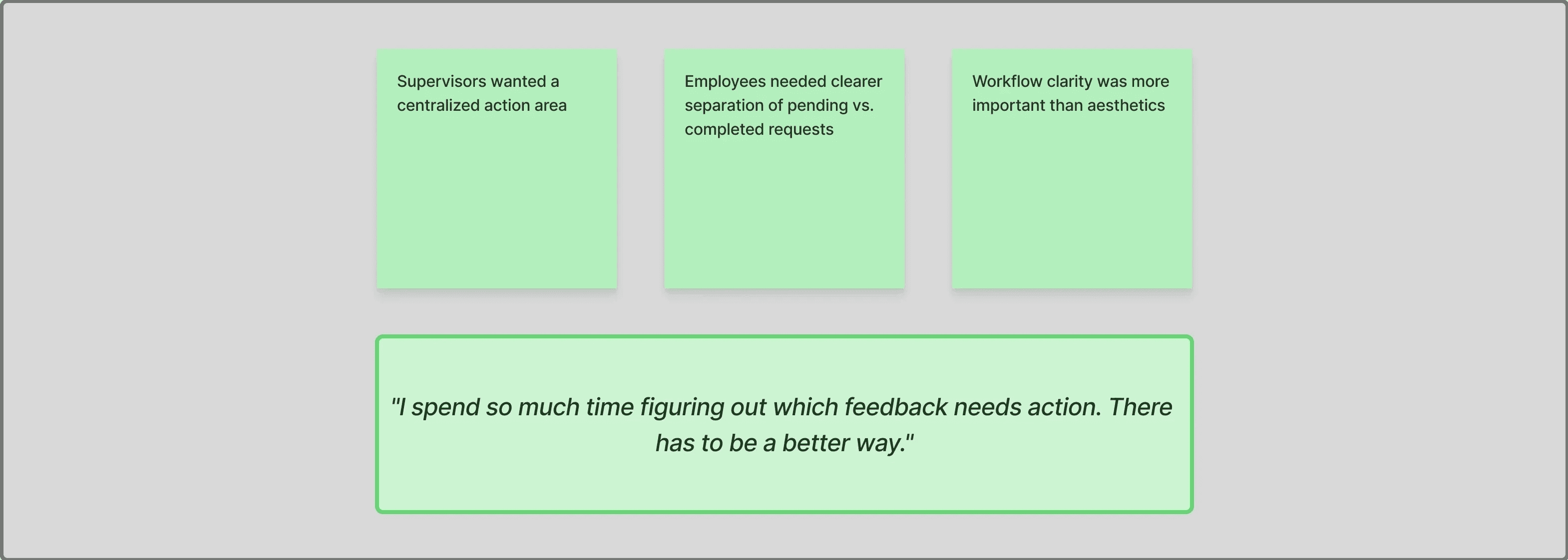 The Feedback feature was confusing: supervisors couldn’t identify requests needing approval, employees struggled to distinguish read vs. unread feedback, and both groups faced overwhelming actions.