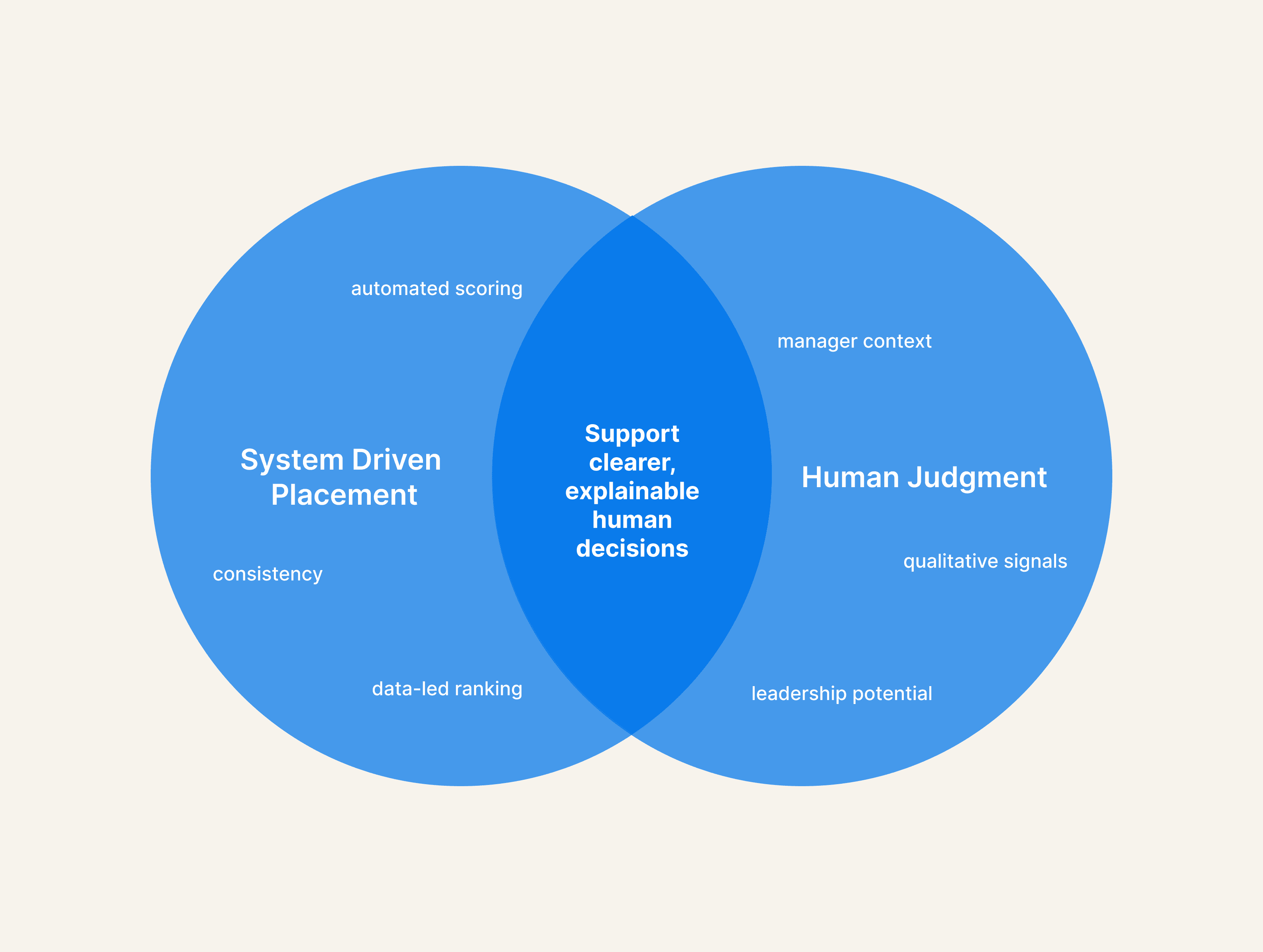 Early conversations surfaced a fundamental tension. Product initially leaned toward system-driven placements based on performance data. HR emphasized leadership potential, manager judgment, and contextual understanding.